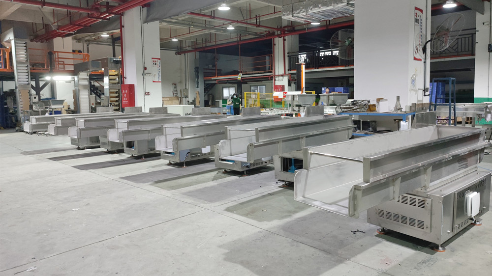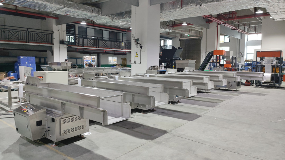 Sistema transportador de chips multisalida personalizado para línea de envasado